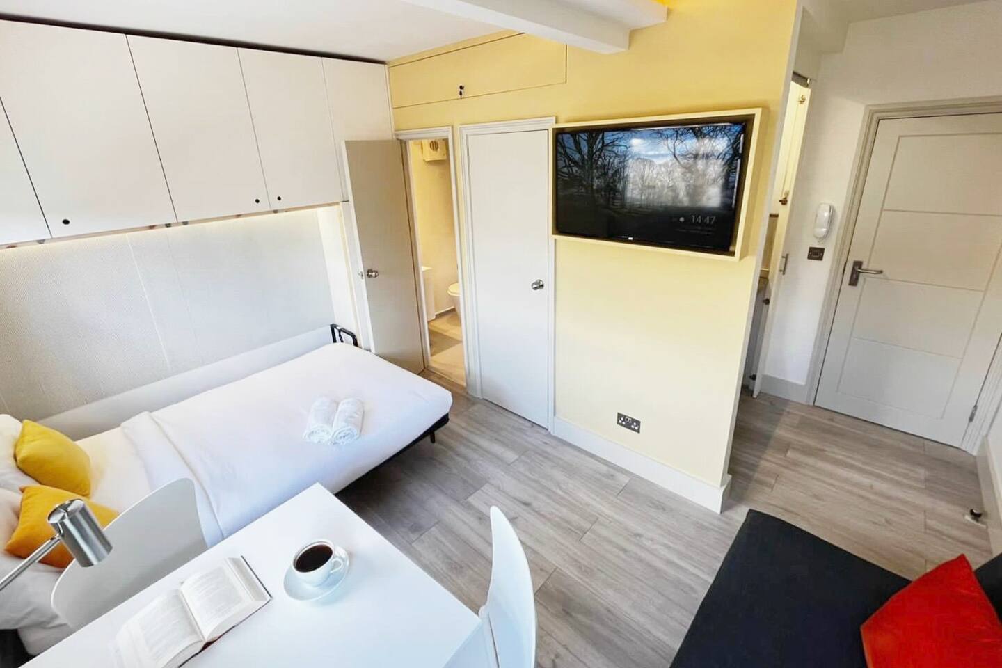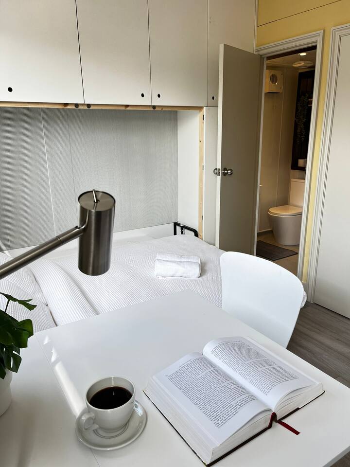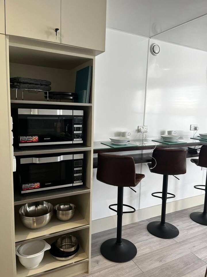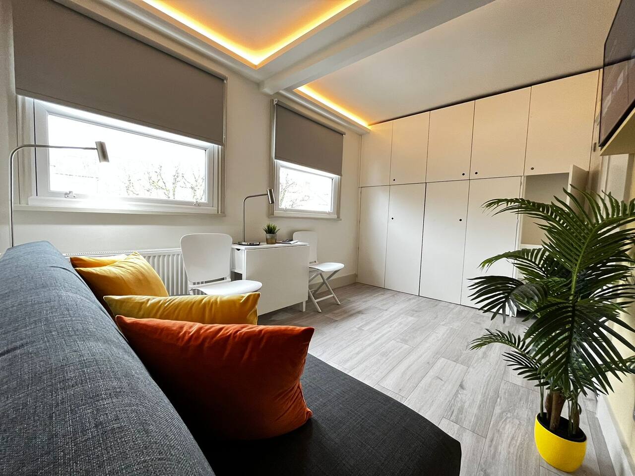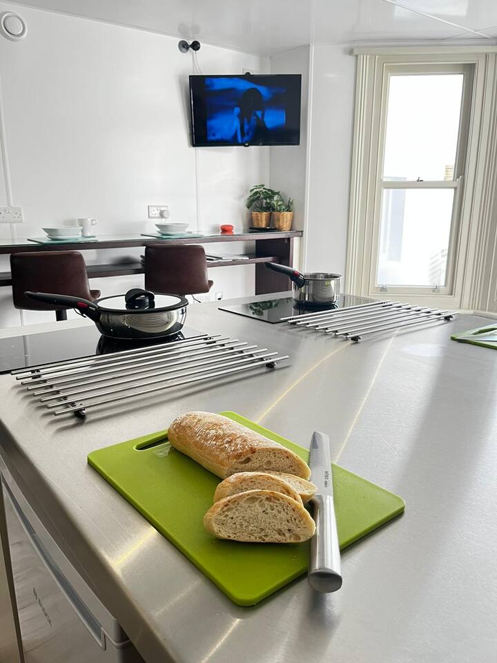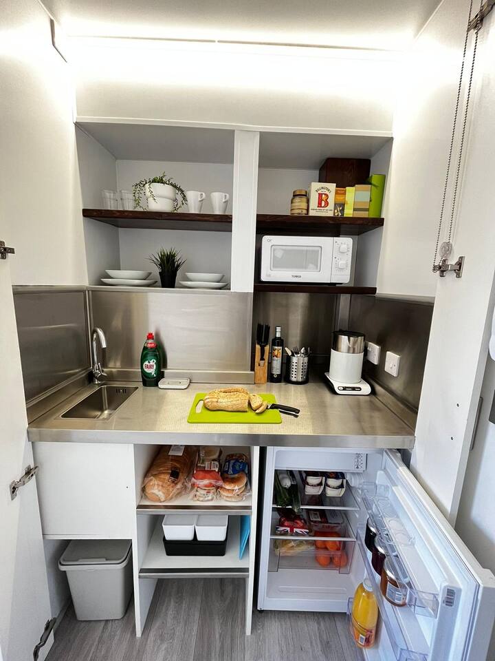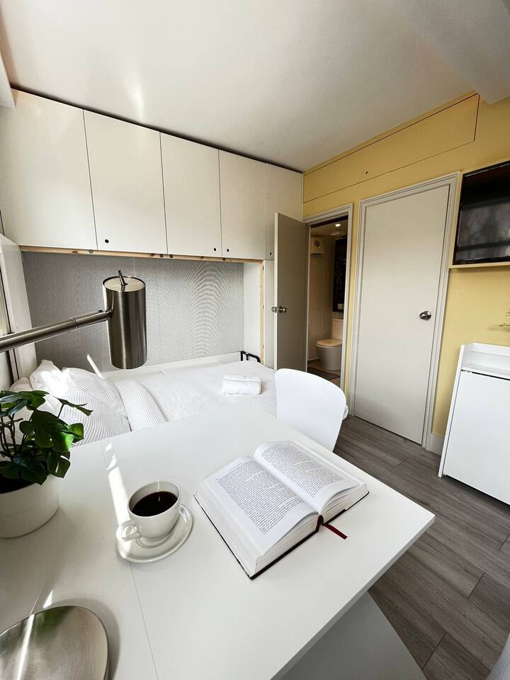 Make your way along the quiet street lined with beautiful Victorian townhouses and into your own modern (almost) beachside studio, filled with clever design, bright open spaces, and everything you could need for a comfortable stay. This thoughtfully designed studio overlooks the charming streets of Hove. Enjoy your morning coffee at the café-style table, then fold it away for more room to relax. The living area features a comfy sofa facing a wall-mounted smart TV with all your favorite streaming apps. The sofa also converts into a second sleeping space for an additional guest. Prepare light meals in the fully equipped kitchenette with a small fridge, microwave, dinnerware, utensils, and sink. For bigger meals, guests are welcome to use the optional larger gourmet kitchen and dining area within the building. The Murphy bed folds down effortlessly from the closet, ready with fresh linens for a comfortable night’s sleep. A cozy study nook with a desk, lamp, and shelving is perfect for working or studying. The bathroom is modern, sparkling clean, and features a shower enclosure and a vanity stocked with towels, hand wash, shampoo, conditioner, and body wash. Enjoy 24/7 access to the on-site laundry room, with complimentary detergent provided—perfect for longer stays or travelers packing light. All of this is located just steps from Hove’s beautiful beach, independent cafés, eclectic shops, and easy transport links into Brighton and beyond. Book your stay and experience relaxed, stylish living by the sea — we can’t wait to host you!