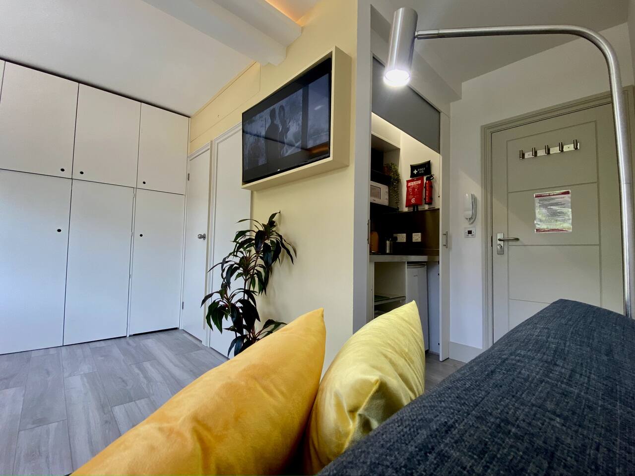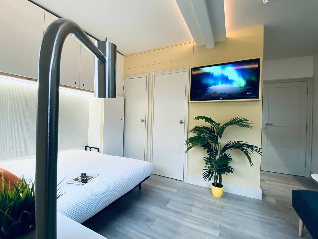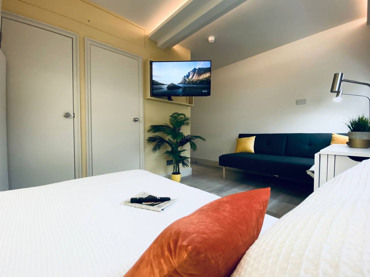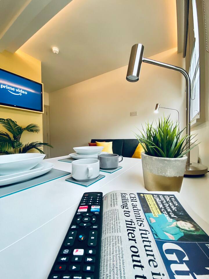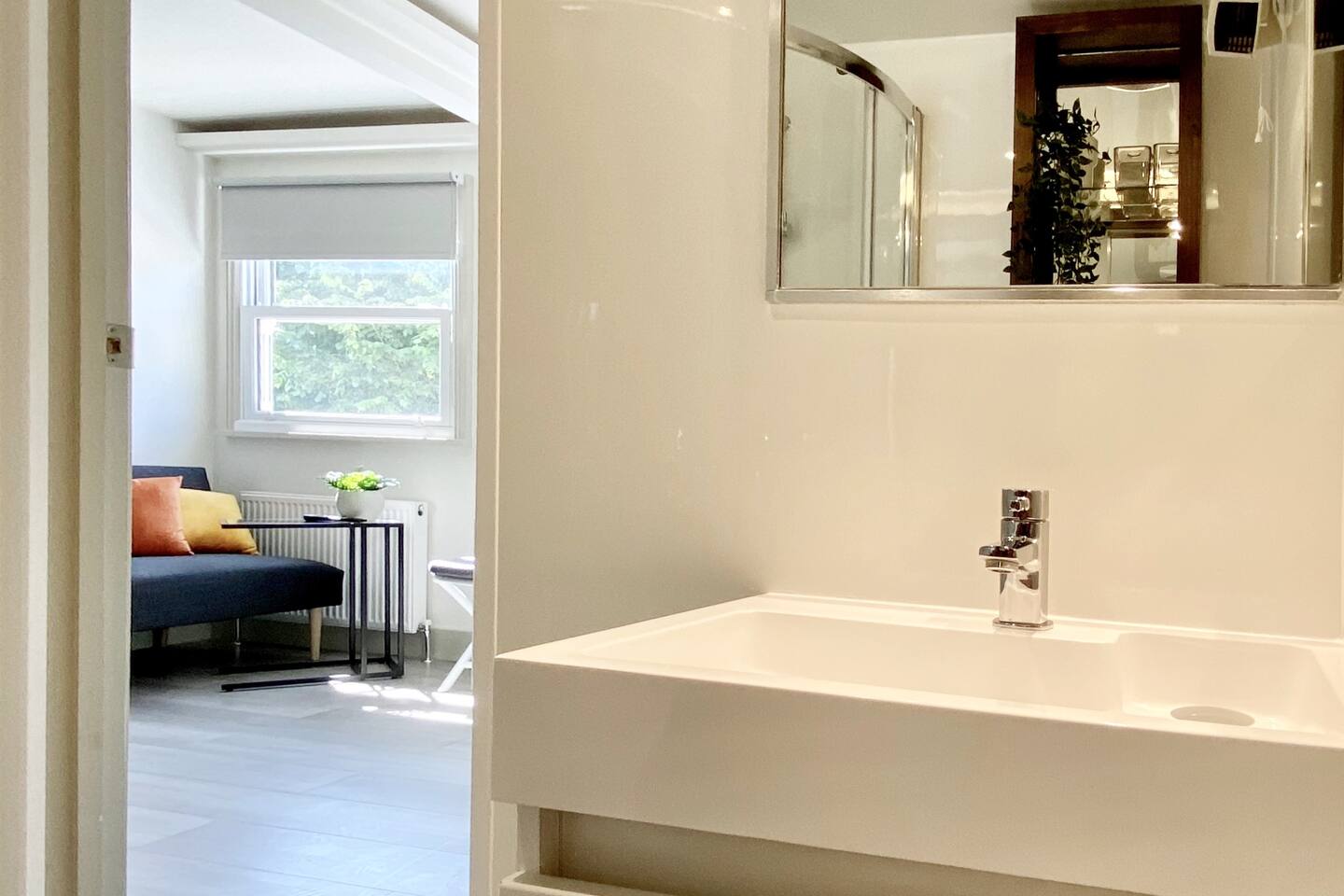 Make your way along the quiet street lined with beautiful Victorian townhouses and into your own modern (almost) beachside studio, filled with clever design, bright open spaces, and everything you could need for a comfortable stay. This thoughtfully designed studio overlooks the charming streets of Hove. Enjoy your morning coffee at the café-style table, then fold it away for more room to relax. The living area features a comfy sofa facing a wall-mounted smart TV with all your favorite streaming apps. The sofa also converts into a second sleeping space for an additional guest. Prepare light meals in the fully equipped kitchenette with a small fridge, microwave, dinnerware, utensils, and sink. For bigger meals, guests are welcome to use the optional larger gourmet kitchen and dining area within the building. The Murphy bed folds down effortlessly from the closet, ready with fresh linens for a comfortable night’s sleep. A cozy study nook with a desk, lamp, and shelving is perfect for working or studying. The bathroom is modern, sparkling clean, and features a shower enclosure and a vanity stocked with towels, hand wash, shampoo, conditioner, and body wash. Enjoy 24/7 access to the on-site laundry room, with complimentary detergent provided—perfect for longer stays or travelers packing light. All of this is located just steps from Hove’s beautiful beach, independent cafés, eclectic shops, and easy transport links into Brighton and beyond. Book your stay and experience relaxed, stylish living by the sea — we can’t wait to host you!