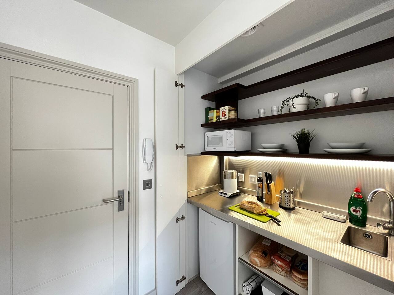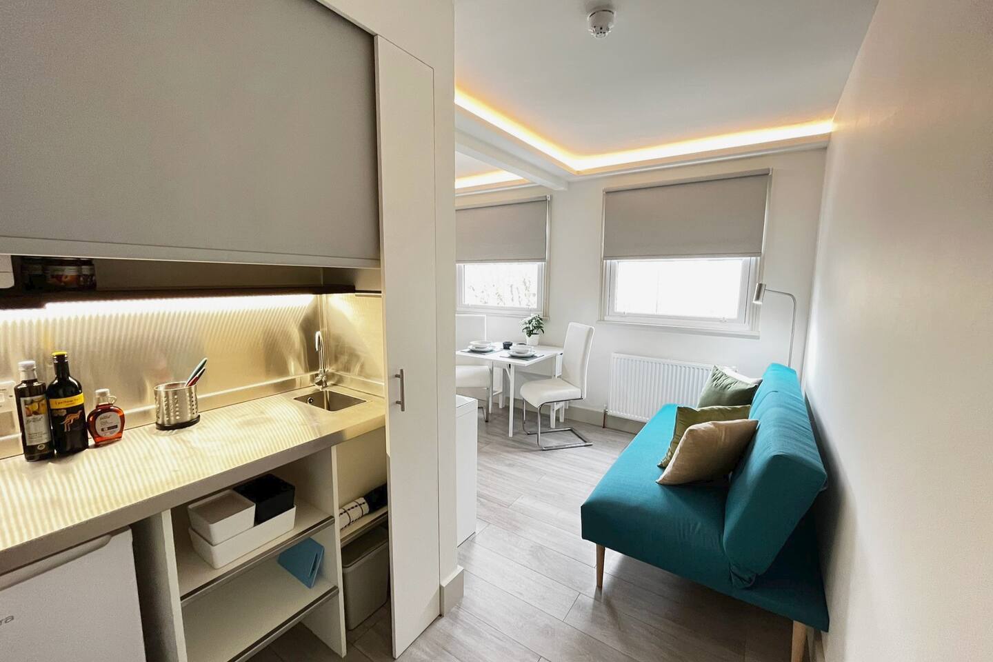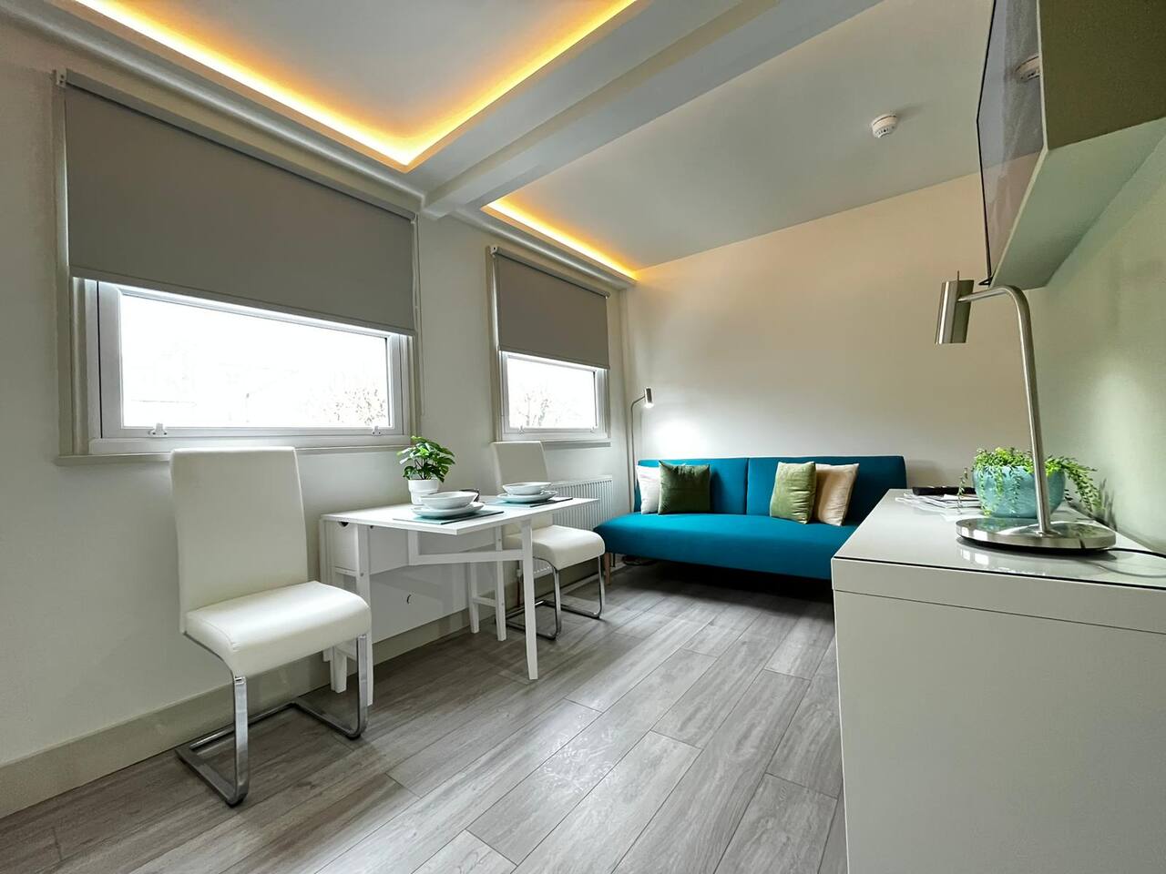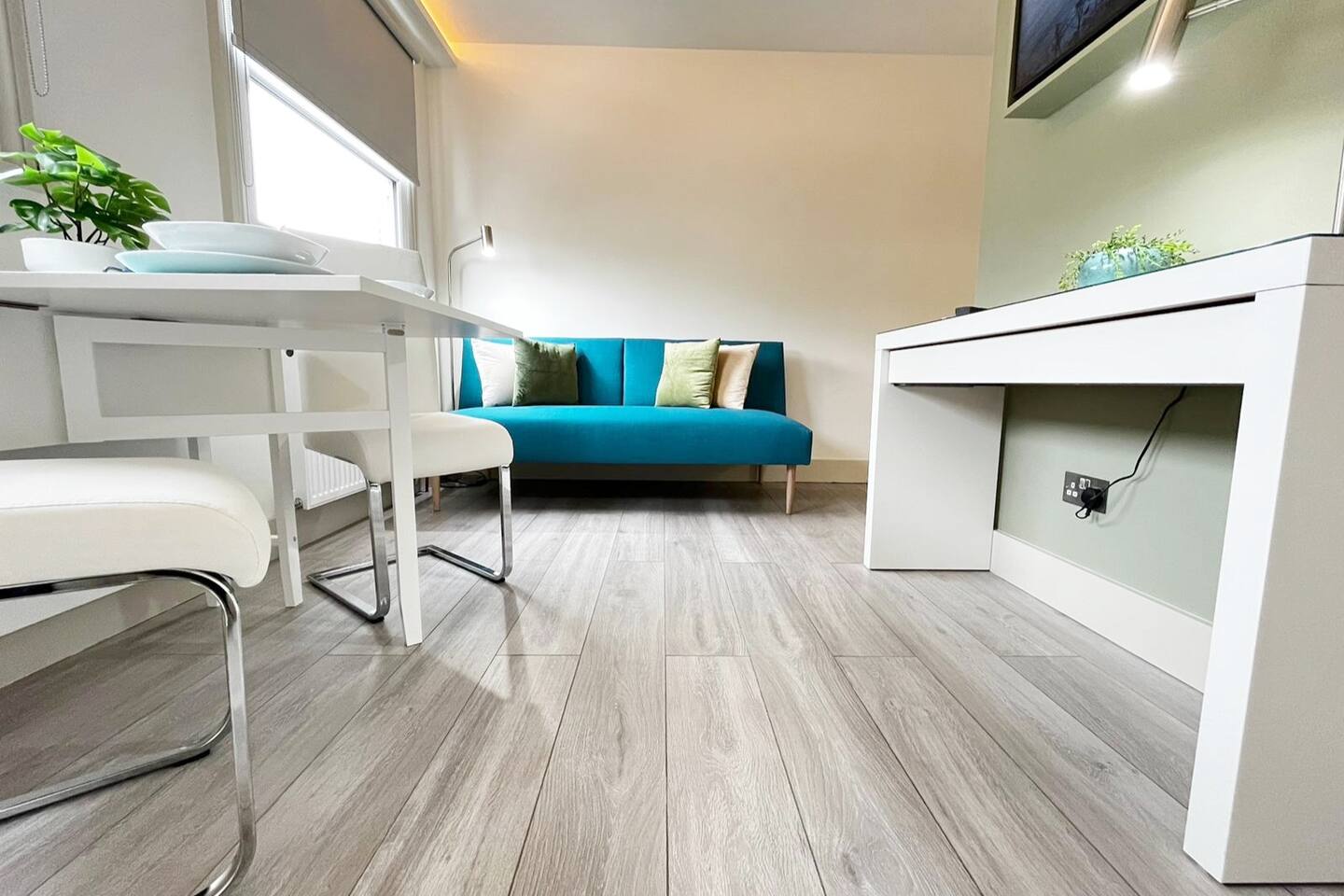 Make your way along the quiet street lined with beautiful Victorian townhouses and into your own modern (almost) beachside studio, filled with clever design, bright open spaces, and everything you could need for a comfortable stay. This thoughtfully designed studio overlooks the charming streets of Hove. Enjoy your morning coffee at the café-style table, then fold it away for more room to relax. The living area features a comfy sofa facing a wall-mounted smart TV with all your favorite streaming apps. The sofa also converts into a second sleeping space for an additional guest. Prepare light meals in the fully equipped kitchenette with a small fridge, microwave, dinnerware, utensils, and sink. For bigger meals, guests are welcome to use the optional larger gourmet kitchen and dining area within the building. The Murphy bed folds down effortlessly from the closet, ready with fresh linens for a comfortable night’s sleep. A cozy study nook with a desk, lamp, and shelving is perfect for working or studying. The bathroom is modern, sparkling clean, and features a shower enclosure and a vanity stocked with towels, hand wash, shampoo, conditioner, and body wash. Enjoy 24/7 access to the on-site laundry room, with complimentary detergent provided—perfect for longer stays or travelers packing light. All of this is located just steps from Hove’s beautiful beach, independent cafés, eclectic shops, and easy transport links into Brighton and beyond. Book your stay and experience relaxed, stylish living by the sea — we can’t wait to host you!