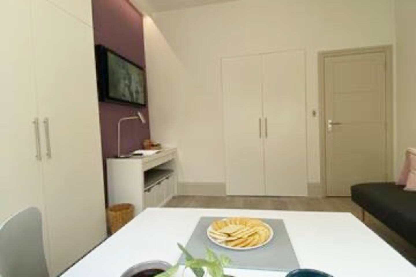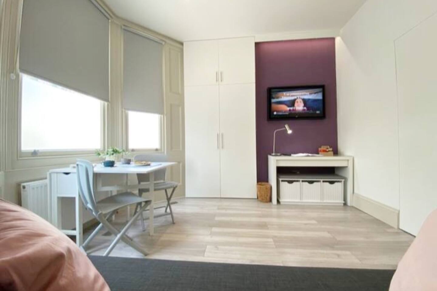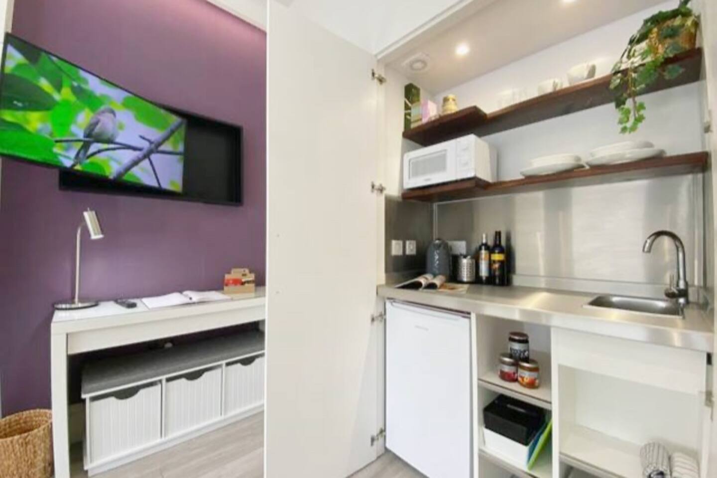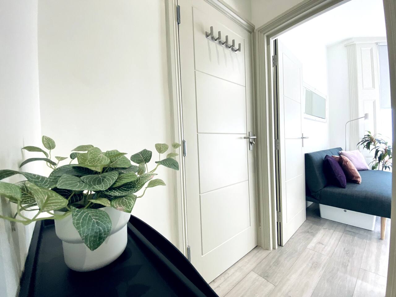 Make your way along the quiet street lined with beautiful Victorian townhouses and into your own modern (almost) beachside studio, filled with clever design, bright open spaces, and everything you could need for a comfortable stay. This thoughtfully designed studio overlooks the charming streets of Hove. Enjoy your morning coffee at the café-style table, then fold it away for more room to relax. The living area features a comfy sofa facing a wall-mounted smart TV with all your favorite streaming apps. The sofa also converts into a second sleeping space for an additional guest. Prepare light meals in the fully equipped kitchenette with a small fridge, microwave, dinnerware, utensils, and sink. For bigger meals, guests are welcome to use the optional larger gourmet kitchen and dining area within the building. The Murphy bed folds down effortlessly from the closet, ready with fresh linens for a comfortable night’s sleep. A cozy study nook with a desk, lamp, and shelving is perfect for working or studying. The bathroom is modern, sparkling clean, and features a shower enclosure and a vanity stocked with towels, hand wash, shampoo, conditioner, and body wash. Enjoy 24/7 access to the on-site laundry room, with complimentary detergent provided—perfect for longer stays or travelers packing light. All of this is located just steps from Hove’s beautiful beach, independent cafés, eclectic shops, and easy transport links into Brighton and beyond. Book your stay and experience relaxed, stylish living by the sea — we can’t wait to host you!