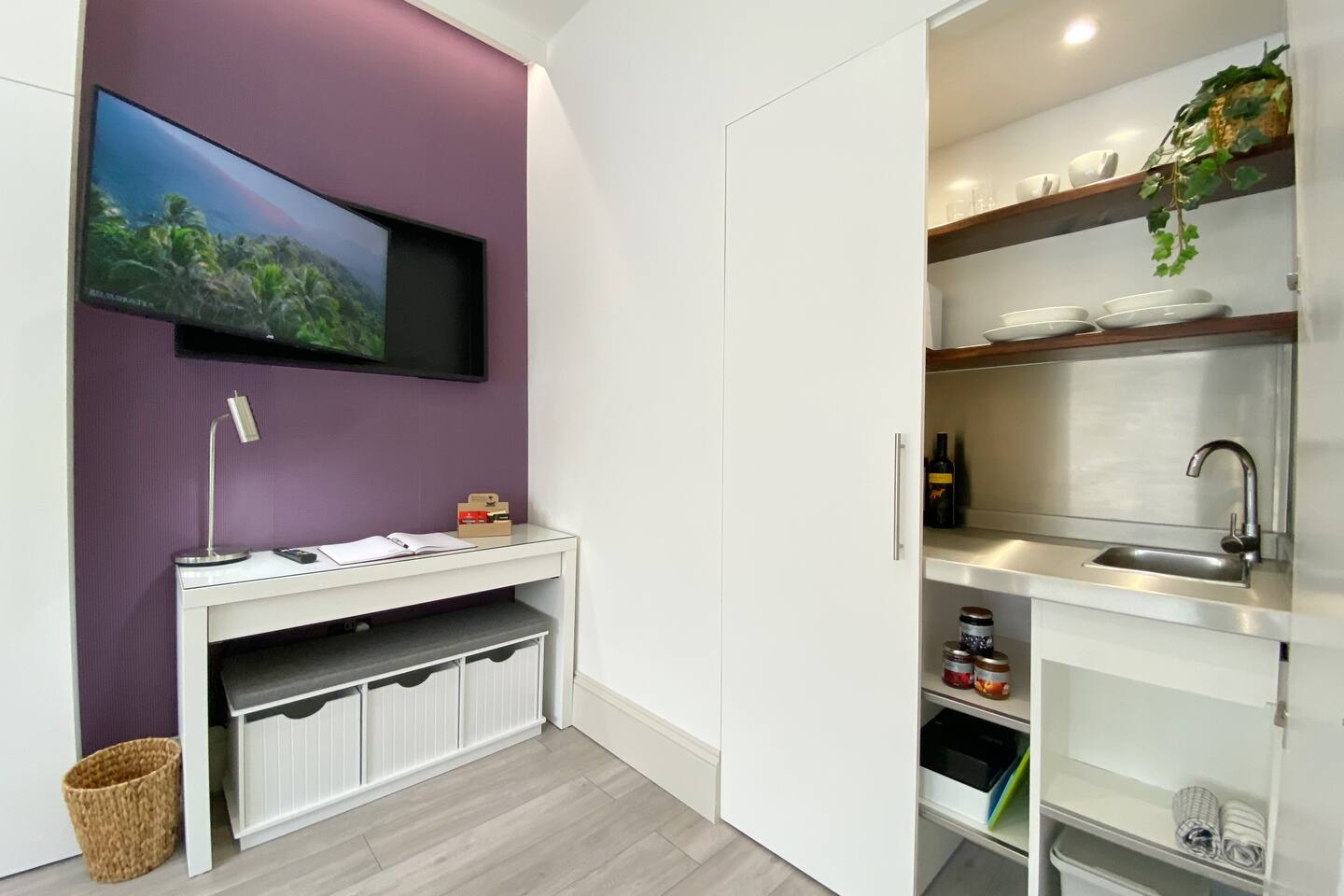 Guests have private access to the entire studio apartment as well as free Wi-Fi, complimentary coffee and access to the 24/7 laundry and fully equipped gourmet kitchen