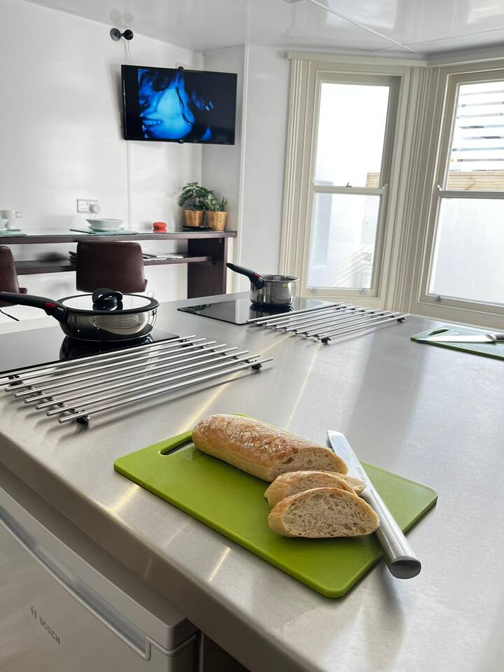 We strive to ensure that your time at the apartment is relaxing and enjoyable. We are always available during your stay to address any questions and provide recommendations on things to do and see in the area. Stay, play, relax, or explore the pavements to discover majestic squares, crescents, and leafy communal gardens surrounded by buttercream-colored buildings that dazzle under the blue sky. From this central yet quiet location, you'll be only steps away from the beach, numerous restaurants, eclectic shops, and lively bars, giving you the ultimate base to experience everything Hove has to offer. Drive just 5 minutes to reach the iconic Brighton Pier and the city center, or leave the car behind with everything you could need for your next coastal getaway right on your doorstep. No trip to Hove is complete without a walk along the gorgeous, two-mile-long pebble beach, offering stunning views of the English Channel. Here, you can leisurely stroll along the promenade, sunbathe on the beach, or try your hand at water sports like kayaking, windsurfing, or paddleboarding. Aside from the beach, Hove is known for its eclectic shopping scene, featuring independent boutiques, vintage stores, high-end fashion, and homeware shops. Spend hours exploring markets, browsing for unique souvenirs, or indulging in some retail therapy. In the evenings, Hove comes alive with a range of bars, pubs, and restaurants catering to all tastes. Whether you crave a fancy cocktail or a traditional pub meal, there's something for everyone in this vibrant town. The area is particularly renowned for its seafood, so be sure to try locally-caught fish and chips or fresh oysters. For those interested in culture and history, Hove has plenty to offer. Explore the stunning Hove Museum and Art Gallery, featuring exhibits on local history and art, or take a stroll through nearby Hove Park, a beautiful green space with a tranquil pond and abundant wildlife. Whether you're here for a relaxing beach vacation or an action-packed adventure, Hove offers the best of seaside living in the UK. You're sure to find something to love in this charming and vibrant town. Leafy and family-friendly, with ample beach space and acres of parkland, elegant Hove offers premier restaurants. In the expansive Hove Park, find a variety of family attractions, including tea rooms, a miniature steam railway in summer, and numerous sports facilities. Take a tour of the nearby West Blatchington Windmill and enjoy pretty walks along the seafront. You're within reasonably easy flat walking distance of central Brighton, based in a stylish Hove guest house with parking, or find fast rail links from Hove station to Brighton, Gatwick Airport, and London Victoria. Make Hove your car-free holiday base in the South East. Book Hove accommodation online now. Explore the heart of Brighton from this Designer Studio! Unwind in this boutique, open-concept space that is perfect for couples, families with young children, business people, and travelers alike. It offers all the amenities you'll ever need and is the perfect base to explore Brighton, with Brighton station and Brighton beach just a short 10-minute walk away.